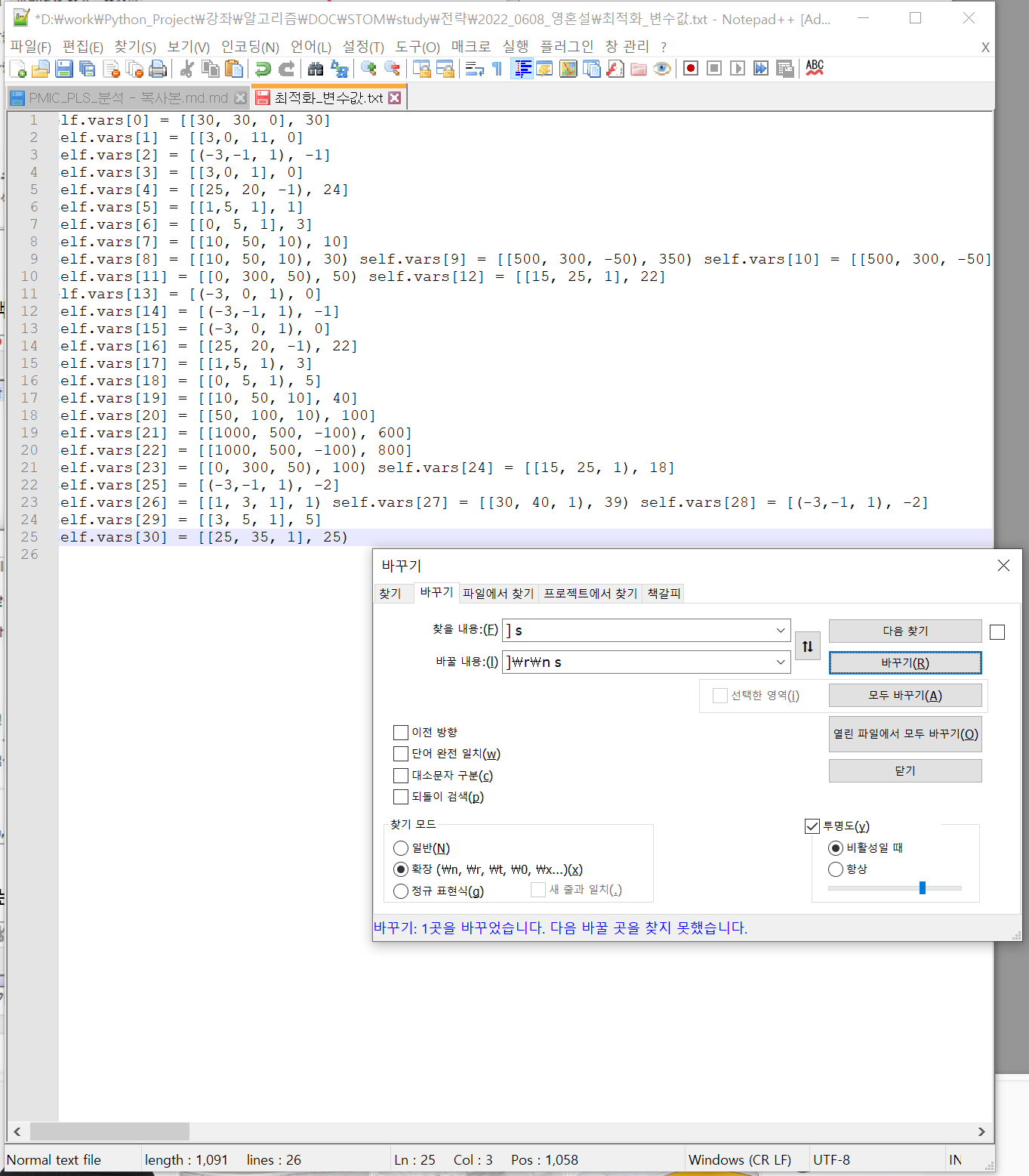 - 바꿀내용에 \r\n 개행 문자 추가